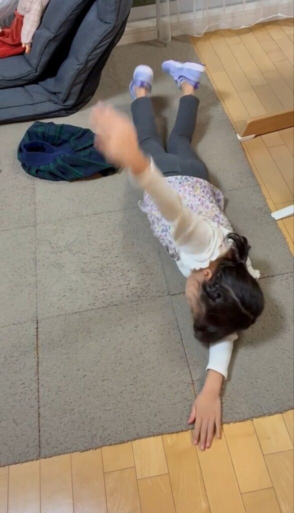 リビングで習ったばかりのクロールを披露するニコちゃん( *´艸`)
