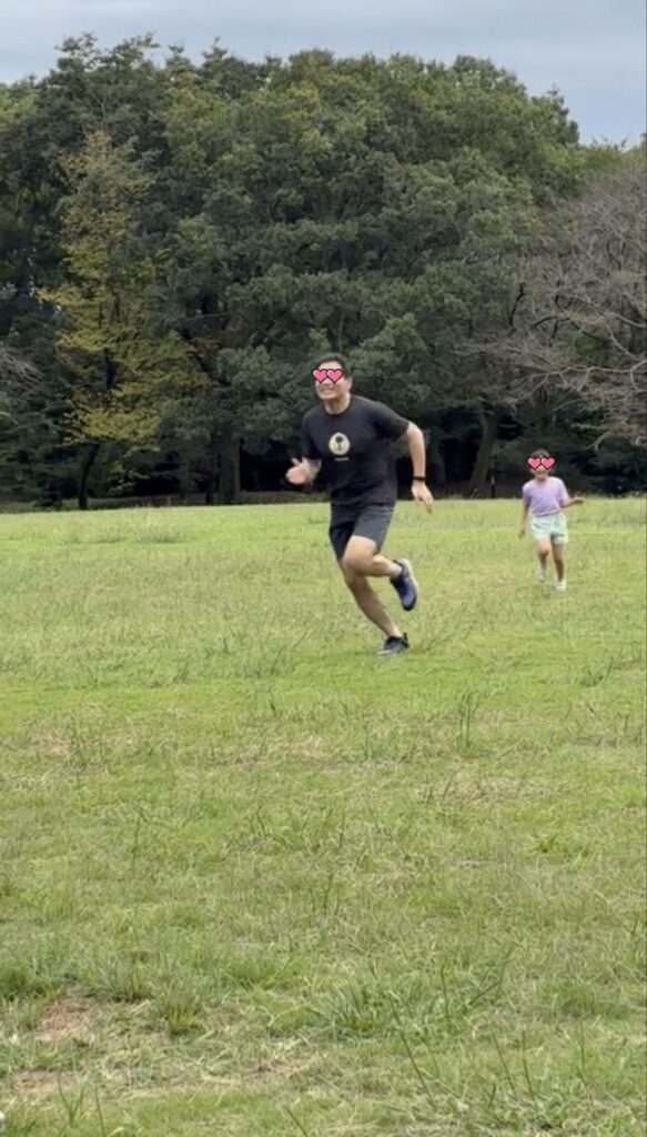 その後、50mくらいの距離を二人で競争(; ・`д・´)