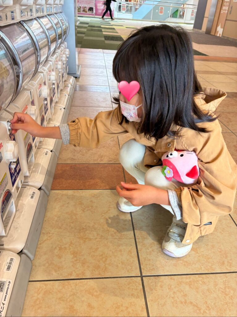病院ポイント(一回100円)でガチャガチャをするニコちゃん。